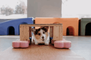 This can help with balance and proprioception or awareness of their body position. It can also help with leg and core strength. When a pet stands on the rocker board it still rocks from side to side. They must try to resist the movement and maintain their balance.
